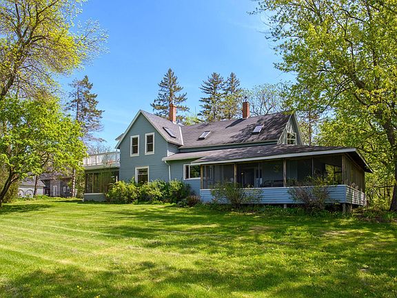 family/living room with bay window, French doors and main floor office. Two 3/4 baths on the main level. Wrap around porch with sauna. Upper level has three oversized bedrooms with rustic beams and vaulted ceilings, full bath with claw foot tub, separate shower, newer hardwood floors with Geothermal in-floor heat. Third bedroom includes upper level laundry and off-bedroom deck. Historic Barn plus hayloft, with 7 acres of horse ready open area. Functioning Greenhouse. Granary Building is completely finished, perfect for on-site office or guest space. Chicken coop/storage shed. Outdoor pizza oven. Newer shingles on Barn, Granary, chicken coop. Pear tree grove and creek running through.