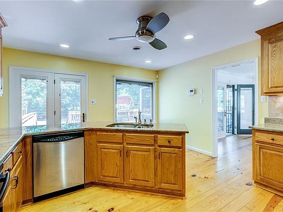 This 3 Bedroom 2 bath Ranch has it all! It features a Fabulous Oak Kitchen with Custom Cabinets, Granite Counter Tops, Recessed lights and a Tile Backsplash. This kitchen is perfect for entertaining. It also has a large master suit with a Jetted Tub and Glass Enclosed Walk in Shower with Bronze fixtures. There are Beautiful Wood Floors throughout the home with Tile in the bathrooms and laundry area. It even has a tiled walk in shower in the hall bath. The home has Pella Windows and a Pella French Door off of the Family room. This home has lots of storage from the large laundry room with custom cabinets to the pull down stairs going to a floored attic and even an attached shed. Outside enjoy a partially fenced in yard, Large Front Porch, a Screened Back Porch, Carport, Detached Storage Sheds and Large Deck. The HVAC and 50-gal water heater were both replaced in the last 4 years.