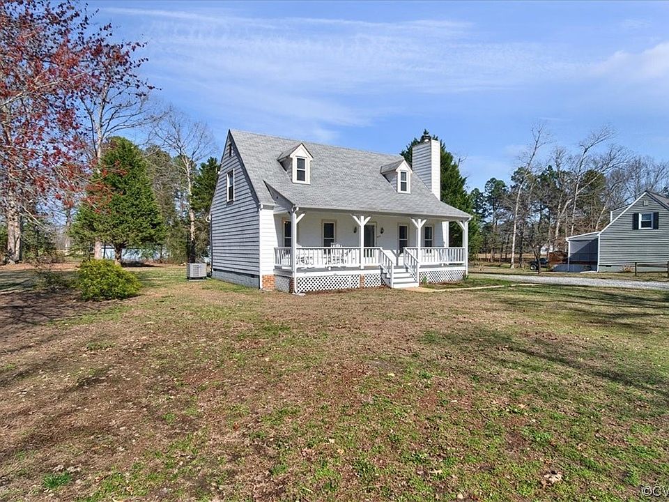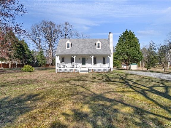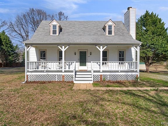 Welcome to this charming cape style home, now available in Varina. Situated on over a full acre and boasting 4 bedrooms with 2 full baths, this turnkey property is ready for you. Upon arrival, you will be greeted by the front porch spanning the full width of the home. When you enter, you will find yourself in the newly carpeted living room with the wood burning fireplace. Through the entry way is the kitchen equipped with granite counter tops, tile backsplash, and an eat-in area. Down the hallway you will find 2 of the bedrooms and the full hall bath. The 2nd level features the other 2 bedrooms, including the one currently being used as the primary. Another updated full bath can be found here as well. Through the sliding glass door in the kitchen is the spacious deck overlooking the open backyard, where the detached garage is located. Recent upgrades to the home include new HVAC 2022, some new paint, and new carpet in the living room and bedrooms. Schedule your showing today!