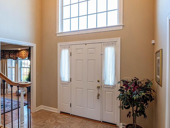 Nestled in a serene cul-de-sac, this 4-bed, 2.5-bath brick-front Colonial offers style & modern updates, set on nearly 3 acres of picturesque land. The 2-story foyer has tile flrs & grand palladium window, filling the space w/natural light. The formal LR exudes sophistication w/its HW flrs & crown & baseboard molding, while the formal DR is the perfect setting for entertaining, complete w/a bump-out window, wainscoting & crown molding. The heart of the home, the updated kitchen, boasts granite counters, stainless stl apps, recessed lts & a ctr island w/bfast seating. Adjacent eating area w/sliding dr access leads to a paver stone patio, perfect for outdoor gatherings. Relax in the cozy FR, feat a stacked stone tile FP, custom mantel, spotlights & ceiling fan.