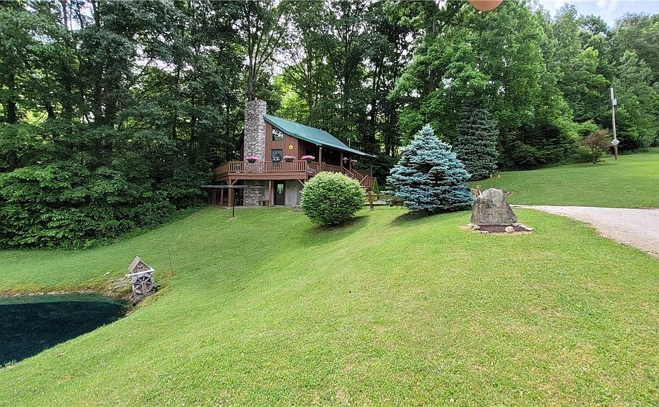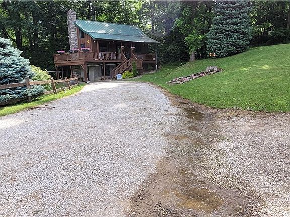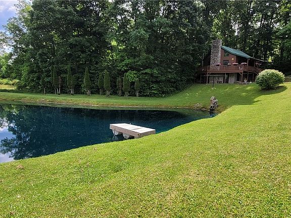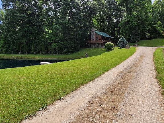 Situated on a spacious 6.45 acres this cozy log cabin sets the scene for peace a relaxation. Build in 2002, the home sits on a block foundation w/ full basement, 1 bed and 1.5 baths, kitchen, as well as a loft overlooking the open living area. This home is energy efficient and is currently heated with woodburner fireplace insert as well as a supplemental woodburner and gas wall heater in the basement. The home currently does not have electricity, but electricity was previously used and as a result all wiring and electrical components are still in place. Just contact the power company and continue service. On top of the electric there is also a forced air gas furnace that could be hooked back up. There is free gas supply to the home and the water is gravity fed from a natural spring up the hill. Private septic. Outside the home there is a wraparound deck where you will witness beautiful views of the ¼ acre pond out front. Lots of room outside for hosting and enjoying those peaceful summer evenings. In 2023 the owner added a pole barn and pasture for his horses. There is ample space remaining to add more buildings. Call today before it is gone.