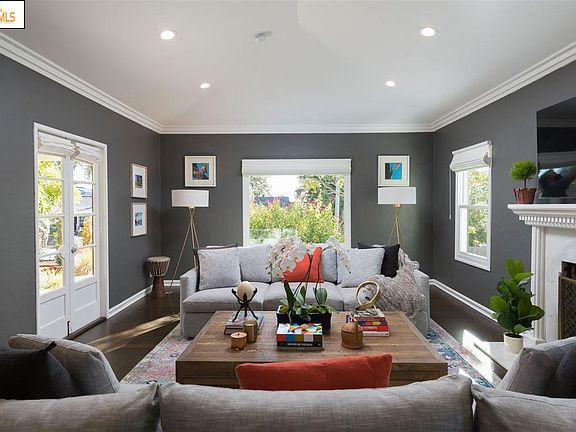 A stunning modern farmhouse featuring 4 bed/and 3 baths, with all of the most desired current amenities. Grand proportions grace this home. Lounge in the expansive vaulted living room, complete with oversized fireplace to anchor the space. Then move into the spacious contemporary chef's kitchen with gleaming quartz countertops, stainless steel appliances, subway tile backsplash & new herringbone natural slate floors. Hangout at the breakfast bar, dine in the adjacent dining area or have breakfast at the in-kitchen banquette. Landscaped outdoor oasis, with a flat turf play-space in an enclosed backyard, complete with hand-carved sandstone patio, built-in bench seating & mature citrus. Enjoy this garden view from the primary bedroom with walk-in California Closet system & remodeled main bathroom. Two more bedrooms on the main level overlook the garden & enjoy their own updated bath. Versatile second level offers a work from home office (Zoom Room), plus a TV room/guest suite & bath.