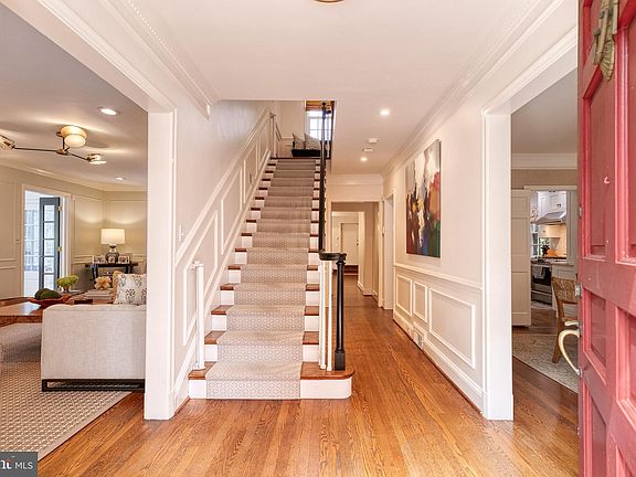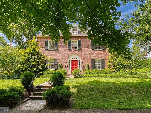 Picture perfect, expertly renovated and impressively expanded Homeland colonial. Drenched in sunlight and adorned with gorgeous professional decor throughout, this center hall home has those properties that are not easy to find in Homeland: an attached garage, kitchen opened to a family room with informal dining area, mudroom, finished sunroom/office and a finished basement rec room. Complete with a sizable flat back yard which is fully fenced in and a fabulous walled stone patio, the property is ready for living and entertaining inside and out. The kitchen features marble counters and unlacquered brass hardware, and has space for bar seating in addition to the breakfast area and the original formal dining room. All baths are renovated, as is the lower level for play space and exercise, and there is nothing left to do but move in and enjoy! Showings to begin Friday 9/8 at 2:00 pm.