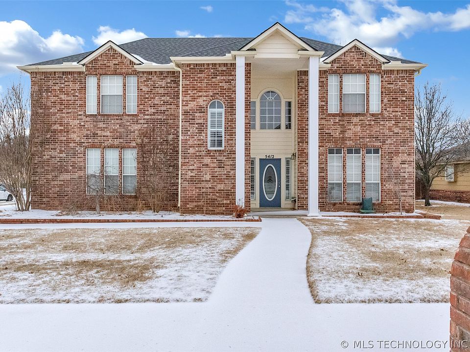 Stately Broken Arrow home on corner lot & backs up to a green-belt. One owner cared and loved for home with updates to include: 3yr roof, 2yr 50-gallon H2o tank, zoned HVAC - both new within 1-2yrs. Plantation shutters, custom wood blinds, gas start fireplace, new lighting and fixtures. Remodeled kitchen with granite counters, tile backsplash, beautiful wood cabinets, lots of space to cook and entertain, large pantry, stainless steel appliances with gas range/stovetop, new dishwasher, microwave and high top bar area. Formal dining could work as office or flex room since there is additional dining room between living & kitchen. Master en-suite has a jetted garden tub, separate shower, double sinks, wonderful closet space. Large bedrooms all with walk-in closets. Fun details like wall safe in the master and 2nd bedroom. A cat walk that leads to the 2nd living/game room. Floored attic space. Irrigated lawn system. Great home to make your own.