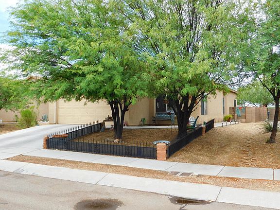 Lovely 3BD/1.75 BA contemporary home with good sized yard. Light and bright, open floorplan. Kitchen with breakfast bar and plenty of cabinet space plus dining area. Large master suite with walk-in closet. Laundry room with pantry. Oversized garage. Enclosed backyard with patio, perfect for outdoor entertaining. Low HOA fees. Mountain views. Convenient to shopping, transportation, I-19. Security gate does not convey.