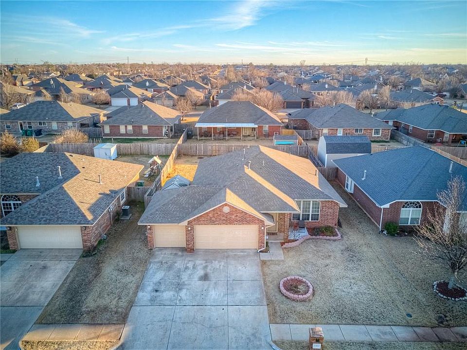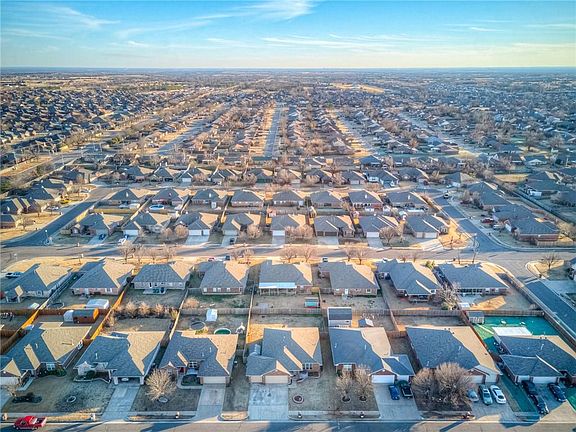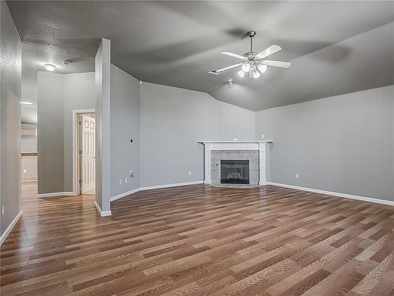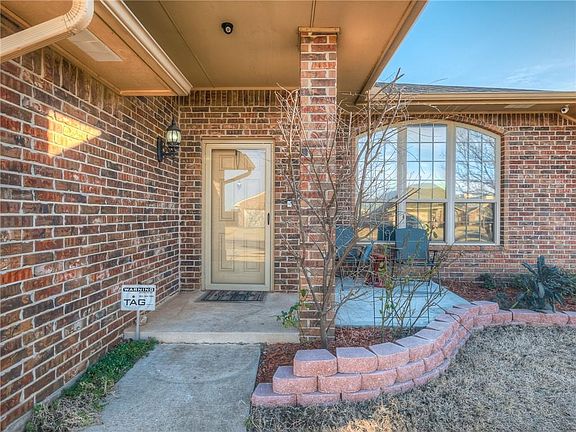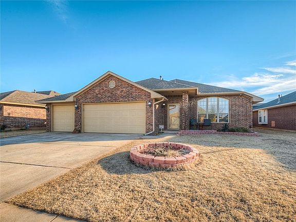 Unique floorplan and stunning layout in SE OKC's Wind Wood! 3 car garage home with storm shelter, 2 living areas and more! Front living area includes a ceiling fan, fireplace, updated laminate wood floors and soothing colors! A small hallway leads to the en suite and kitchen areas! Primary bedroom (en suite) includes a tray ceiling, tub, shower, dual vanities, along with his and hers closets! Kitchen has tile counters, a huge breakfast bar area, pantry, electric cooking and a sizeable breakfast area with more updated flooring! A second living area is just off the kitchen with patio access and a doggie door! Secondary bedrooms have walk-in or step-in closets, while guest bath provides a single vanity and shower-tub combo. The backyard is spacious with a nice storage building. Situated close to the entrance of an established community with close access to I-240. Short commutes to Tinker AFB, major shopping or eateries. Walking distance to Heart Hospital. Buy this home today!