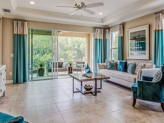 This homesite offers total privacy with a 6' privacy fence in the back yard. The designer kitchen includes a GE stainless steel gas stove, creamy white quartz countertops, white cabinets and tile backsplash. There is tile flooring in all the main living areas. You will enjoy the private view from the spacious lanai with an extended screened enclosure. The master suite features a walk-in closet and the master bath offers dual sinks and large shower. This home also includes den with pocket doors, tankless water heater, crown molding and more. Photos are of model, not actual home. NEW CONSTRUCTION with RESORT STYLE LIVING at its best! Nearly 7000 sq ft club house featuring 24 hr fitness center, billiard/card room, club/craft room, and a common room, movement studio, treatment room, indoor and outdoor kitchens. The Club House is situated on nearly 6 acres of property and offers a resort-style pool, resistance pool, hot tub, dog park, fire pit, formal events lawn, and sport courts. An on-site Lifestyle Director will be on hand to interact with residents and coordinate special activities, parties and events. All lawn care including mowing, trimming fertilizing and plant replacement is included!