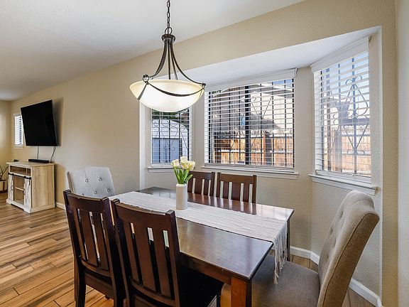 Sweet and inviting home located near Mariposa Basin Park in Taylor Ranch. Lovingly cared for w/ many recent updates. Kitchen with beautiful granite countertops, SS appliances, and gas stove. Wood-look tile floors through the living space. Light-filled family dining space with bay window. White-washed brick fireplace with pellet stove insert. Spacious family room to enjoy time with all of your loved ones. French door entrance into the generous primary suite with updated bathroom--tile floors, tile shower surround and granite topped vanity. Equally gorgeous hall bathroom-Custom tile and granite features. AC to keep you cool in the summer months. Expansive and private backyard that is walled in for privacy. Newly planted trees, turf, rock & large, covered patio. RV parking & side yard access