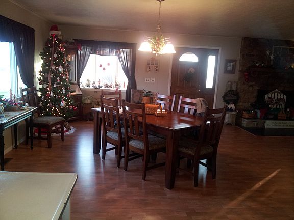 Country living with a convenient location to schools and the Hoosier Heartland. Shallow pond and utility barn on the south end of the acreage with a detached workshop and grain bins. Large open living room, dining area, and kitchen.