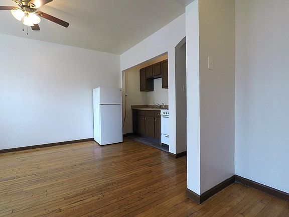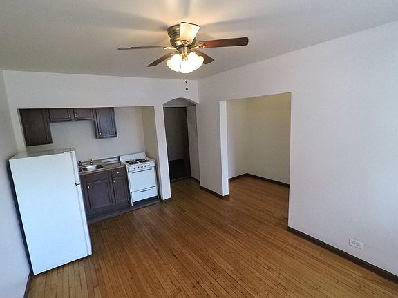 In your rehabbed studio you'll get hardwood floors, all appliances, remodeled contemporary kitchens and redecorated bathrooms. All at an affordable rent that includes free utilities. The property is in a nice location (across from Levin Park), it's a 2 block walk to the Green Line El Central Station, and you'll have respectful neighbors living in the building. These studio's are small at 330sf (think hotel room size), affordable (only utility you pay is electric) and cozy. We have many long term residents in this property that are OK with small, but you should check the floor plan (in the pictures) to make sure you're OK too before visiting. The living area will fit a small couch on one wall and a TV on the opposite wall. A twin size bed will fit in the nook (see floor plan). A full size bed will fit too, with NO room on either side of the bed. If you have a bigger bed it won't fit. Free heat, free water, free trash, free cooking gas. You pay electric only. 1 Year lease. $29 application fee, $425 move-in fee Street parking. Cats OK, no dogs, sorry.