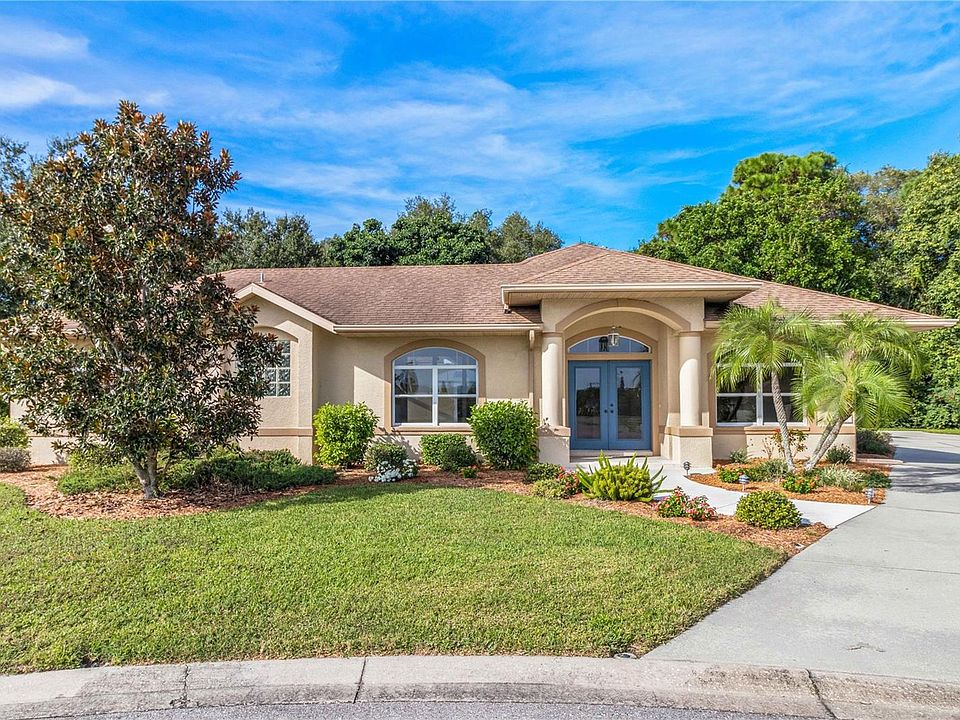 If you are looking for the picture-perfect home, perfectly located in West Bradenton, look no further. This immaculate pool home has new carpeting, new paint, and beautiful tile in neutral colors. The entry, kitchen, family room, baths, and all traffic areas have attractive ceramic tile. The structure of this home surrounds a lovely courtyard pool, protecting it from the elements. Large kitchen has quartz countertops, custom wood cabinets, lots of counter space, a center island, and a breakfast bar. You'll enjoy an ideal, split floor plan with entry to the master bedroom through graceful double doors. This spacious master retreat has coffered ceilings, a large walk-in closet, and a large bathroom with double sinks and a walk-in shower. French doors open from the master suite onto the pool area. One of the other two bedrooms is on the opposite side of the home for privacy, and includes its own ensuite bath. There is an interior laundry room and off the laundry room is a small workshop which also houses the two A/C air handlers. This home is flooded with natural light, has a side entry garage, and is ideally situated on a cul-de-sac setting with a very private rear yard which backs up to the beautifully landscaped Bishop Animal Shelter. Conveniently located close by hospitals/medical facilities, grocery stores, shopping, restaurants, and the Bradenton Country Club. Just minutes to Robinson Preserve with hiking & biking trails, picnic areas, boat launch, and observation platform as well as DeSoto Memorial (a U.S. National Park) and the pristine beaches of Anna Maria Island.