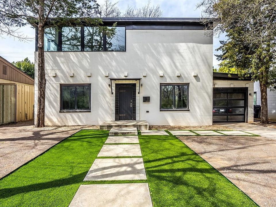 A modern masterpiece is nestled in the woods between Western & Classen in the historic Brookhaven neighborhood. Please come and see what makes this property so incredible. From the suspended staircase to the shower w windows to the synthetic grass, there are special features to delight the senses. Live in a space that inspires!