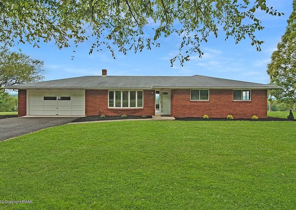***** HIGHEST AND BEST OFFERS DUE BY 5pm on 7/10/2020 ***** Multiple offers received. Incredible Panoramic Mountain Views! This Solidly-built, well maintained brick ranch in Cherry Valley, Hamilton Township is ready for new owners. Move in ready, freshly painted and new carpet throughout, yet it still maintains some of its cool vintage style. This home features 3 bedrooms, 2.5 bathrooms, a living room, kitchen, dining area, large lower level family room and recreation room, a laundry room, and utility room. 2 huge garages; you will find a 2 car attached garage on the main level, with an additional 2-car built-in garage around back in the lower level, both with built in cabinets. 2 beautiful acres with 2, 12 x 14 sheds.