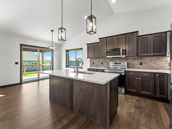 Step into modern luxury with this newly constructed home from Bok-Nel Construction that stands out in the local market for its impeccable finishes and thoughtful design. The open concept main floor is an entertainer's dream, featuring gleaming wood floors and soaring vaulted ceilings. The kitchen boasts sleek quartz countertops, a striking tiled backsplash, and a convenient walk-in pantry, while the living room is anchored by a beautiful fireplace, surrounded by oversized windows that flood the space with natural light. Three spacious bedrooms are located on one level, including a serene primary suite. A separate laundry room off the mudroom adds practical convenience to everyday life. Enjoy the outdoors from the covered deck with stairs leading down to a patio, perfect for relaxing or entertaining. The fully landscaped yard comes complete with sod, sprinklers, and rock for low-maintenance beauty. Don't miss this opportunity to own a home with unrivaled craftsmanship and attention to detail, designed to elevate your living experience.