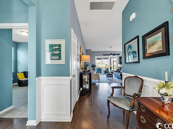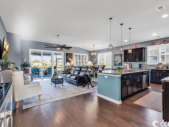 Welcome to the Farm at Timberlake! A natural gas community 4 miles from the Beach! This five year young home has all of the updates and features you could want for an entertainer's dream. Top Features include an open floor plan with 10 foot high ceilings, gourmet kitchen with owner-upgraded range and hood, backsplash with pencil trim and a huge shiplap-wrapped island. The kitchen has 36" staggered cabinets, granite countertops, large walk-in pantry, and stainless steel appliances. Hardwood floors throughout the living area, including dining, kitchen, and master bedroom. The master suite has a window view of the fountain on the pond, a five foot shower, double sinks and walk-in closet. The best feature of the house is the oversized 26'x9' screened-in porch with added sun shades and curtains for privacy. Need more entertaining space? The owner added a 29.5x16.5 stone patio off the porch with a flower garden and river rocks. This patio has a beautiful fireplace feature that you will enjoy year-round. Other added updates include lighting chandeliers and pendants, custom mirrors, wainscoting in the foyer, plantation shutters, epoxy garage floor and low maintenance landscaping. The community offers a large pool with a food prep room, fitness room, pickle ball court, kids playgrounds, fishing dock, and sidewalks. All measurements and square footage are approximate and not guaranteed. Buyers should verify.