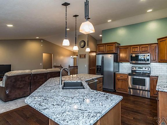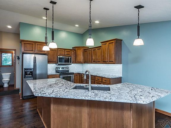 WOW! Here is your chance at a great home with water frontage & views. This wonderful Ranch home features 5 bedrooms, 2.5 baths, 3 car garage (double deep) w/heat, insulated, extra 100-amp electrical panel & water & over 2600 sq ft finished of living space and impressive scenic & peaceful views of the Galway Park pond from the backyard, so no neighbors. Located on the West-side of Sioux Falls this home has had many updates like new carpet in 2018, granite kitchen counter-tops, tile back-splash, Custom Hickory Cabinets, 8' insulated garage door, under cabinet lighting, large pantry, duel fuel heat pump, new formal dining, fenced backyard, gas fireplace, sprinkler system w/colored curbing, 10x10 shed & so much more to see. Located close to Galway Park, mall shopping, entertainment, schools, restaurants & easy access to East-side via 57th St close by. If you are looking for a peaceful getaway then check this one out!