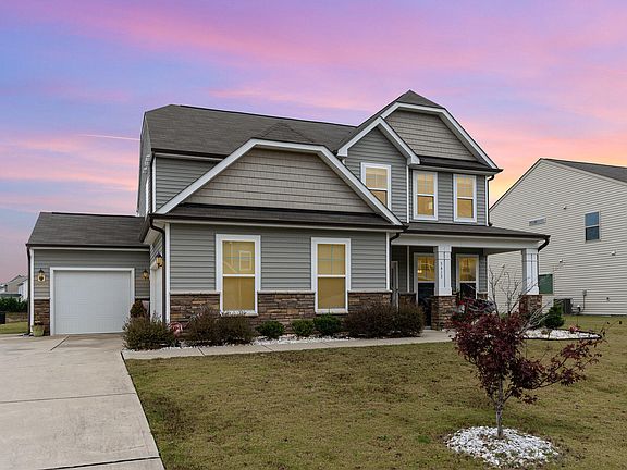 Welcome to 5413 Weathered Rock Ct, an extraordinary home constructed in 2017, nestled in the vibrant Rockbridge community of Knightdale. As you step through the stunning entryway, you're greeted by an elegant formal dining area, perfect for hosting unforgettable gatherings with family and friends. The open floor plan boasts soaring 9-foot ceilings, giving the entire space a sense of airiness. A spacious first-floor guest suite complete with a full bath provides a welcoming retreat for your visitors, ensuring their comfort during every stay. Calling all culinary enthusiasts! The kitchen is a true chef's paradise, featuring an abundance of cabinet space, gleaming granite countertops, and a large pantry, making meal prep a breeze. It flows seamlessly into a cozy eating area and a serene sunroom—your personal haven for relaxation and unwinding after a long day. Head upstairs to discover a versatile bonus space, just waiting for your creative vision, along with two well-appointed secondary bedrooms and a conveniently located laundry area. And let's not forget the magnificent primary suite! This private sanctuary is a true masterpiece, boasting a luxurious tray ceiling, a lavish ensuite with a double vanity and soaking tub, and an expansive walk-in closet to accommodate all your wardrobe needs. Knightdale, NC, is a lively town in Wake County, bursting with parks and scenic trails, all just minutes from the heart of downtown Raleigh. The Rockbridge community offers an ideal setting for those looking to build a vibrant lifestyle in this dynamic area! Don't miss the chance to call this stunning home your own!