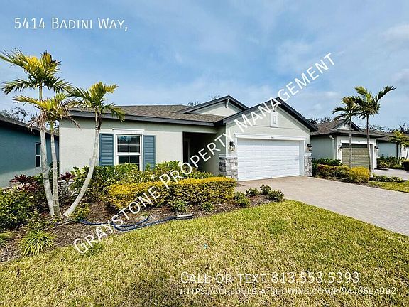 Welcome to the newly constructed 5414 Badini Way, Palmetto, FL 34221a spacious and modern 4-bedroom, 2-bathroom home offering 1,740 sq. ft. of comfortable living. The 2-car garage and spacious driveway provide plenty of parking and storage options. Situated in a quiet, family-friendly community, This beautifully designed home features an open floor plan with plenty of natural light, creating a warm and inviting atmosphere. The modern kitchen is a chef's dream, equipped with stainless steel appliances, sleek countertops, ample cabinet space, and a breakfast bar, making it perfect for entertaining. The primary suite serves as a private retreat, boasting a large walk-in closet and an ensuite bathroom with dual sinks, a soaking tub, and a separate walk-in shower. The bedrooms provide ample space for family, guests, or a home office, while the dedicated laundry room with washer/dryer hookups adds extra convenience. This home comes fully equipped with essential appliances, including a refrigerator, stove/oven, microwave, washer & dryer, water heater, dishwasher, garbage disposal, and blinds for added comfort and convenience. Outside, the private backyard offers the perfect setting for relaxing or outdoor gatherings. This home is close to parks, walking trails, and playgrounds, offering a great environment for outdoor activities. Its prime location ensures easy access to I-75, local shopping, dining, and entertainment, and it's just a short drive from the stunning Gulf Coast beaches. Don't miss this opportunityschedule a showing today and make this beautiful home yours! Pet Policy: Pets Allowed(Only 02 - non-aggressive breed) There is an HOA This beautiful home offers comfort and convenience, including high-speed fiber internet for seamless work, streaming, and everyday use. Residents are automatically enrolled in the available fiber internet options and can select their preferred speed and package at a discounted rate. The chosen internet plan will be added as a separate line item to the rent, ensuring a hassle-free, tailored connection to fit your lifestyle. Note: All Graystone Real Estate residents are enrolled in the Resident Benefits Package (RBP) for $60/month additionally which includes liability insurance, credit building to help boost the resident's credit score with timely rent payments, up to $1M Identity Theft Protection, HVAC air filter delivery (for applicable properties), move-in concierge service making utility connection and home service setup a breeze during your move-in and our best-in-class resident rewards program. More details upon application Community Pool Hot Tub None