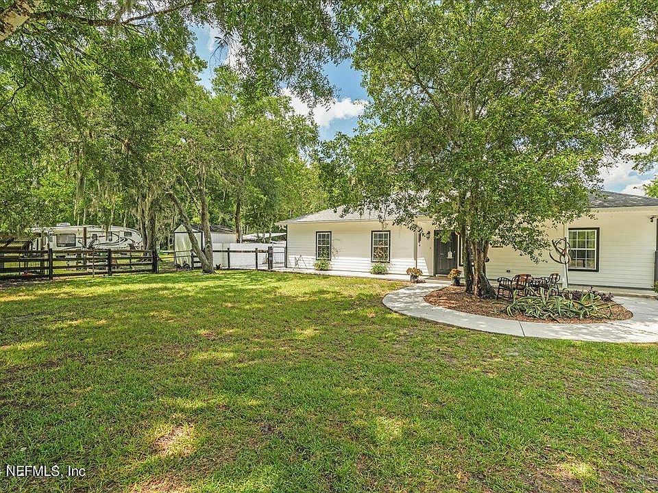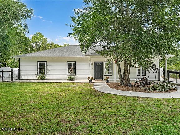 Indulge in the Beautiful Country LIFE near the City! No CDD/HOA! 1.5 acre home exudes potential! Custom built home w/tile & wood flooring throughout w/a large covered front porch! Oversized, granite counter tops w/stainless steel appliances . An entertainer's dream w/well-appointed open spaces. Offers 3 Beds, 3.5 Baths w/a wet bar adjacent to the Living Room. The cute fenced 1/2 acre surrounds the home includes the tall fence in back to create more privacy. Corral compatible. New, covered outdoor kitchen w/an island, TV & room for guests, a gorgeous pool (2021) & hot tub awaits. This LOCATION-great School district, beaches, shopping & Historic St. Augustine minutes away while living on a secluded property w/all the animals you can dream of. The peacefulness & tranquility of the water views is a Bonus! You have 2 wells, septic (2021) & pond. Property also has 2 large sheds to store belongings. Even Zoned for Horses. Don't miss this RARE & Adorable Property! No Water Intrusion!