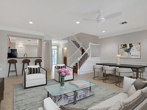 Grand Fairfield 3 bedroom-2 1/2 bath townhome w/1 car garage. Downstairs features spacious open living/dining room. Crown molding, plantation shutters& tile on the diagonal. Volume ceilings.Lots of closet space. Eat in Kitchen. Granite counter tops and breakfast bar. Wood laminate stairs flows through the upstairs(no carpet). Large primary bedroom has custom closet and updated bath w/separate shower w/shower panel system, tub and water closet. There is even room in the primary bedroom for a loveseat or desk. AC-2021 5 Ton Rheem. Both 2nd and 3rd bedrooms are spacious Best Central Boca location adjacent to Boca Center & all of the Town Center Mall. ''A'' rated schools. Close to all major thoroughfares. Guard Gated. Tennis, Bball,community pool. RENT RIGHT AWAY! Pet friendly. Looking for a property that checks all of the boxes? This is what you have been waiting for!