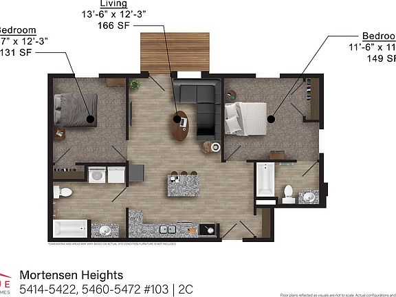 (Pictures are of a 2C layout at Mortensen Heights. They may not be of the exact unit but show the layout and finishes the unit has to offer.)