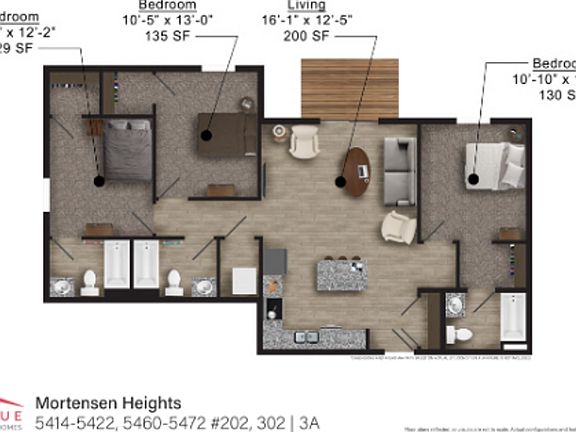 (Pictures are of a 3A layout at Mortensen Heights. They may not be of the exact unit but show the layout and finishes the unit has to offer.)