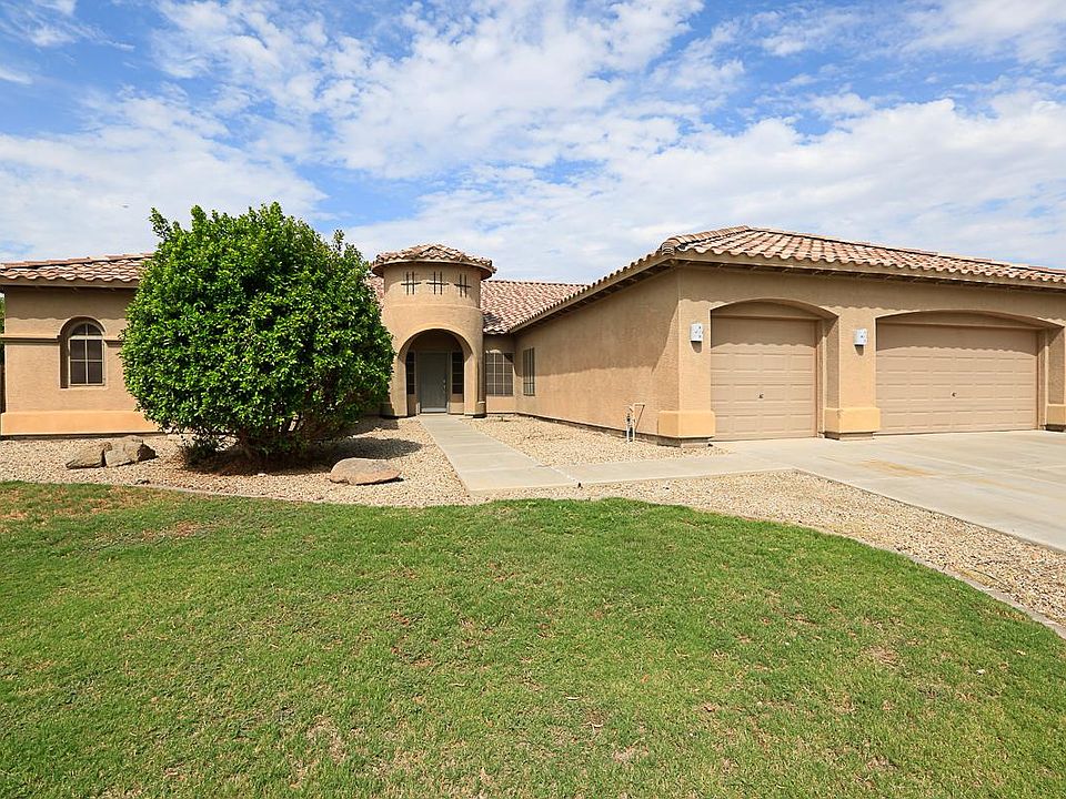 Feel at home in this absolutely beautiful 5 bedroom /3 bathroom home in a gated community! Inside this elegant home you will find large living spaces with a formal dining room. Notice high ceilings, recessed lighting, and ceiling fans throughout. The open kitchen comes with stainless steel appliances, granite countertops, pantry, and a large breakfast bar! The kitchen opens up into an additional room with cozy fireplace! The huge master bedroom features an en suite bathroom with dual sink vanity, walk in closet, and separate shower/tub. You will love having a large backyard with grassy areas. Enjoy a three car garage as well. Conveniently located near restaurants, shopping, golf, schools, the loop 303, loop 101, and the I10 freeway. this home will not disappoint. Contact us to see this home today! Rent will be $2095 a month before sales tax, $2095 security deposit, $150 admin fee. No pets please. Tenant must provide their own refrigerator, washer, and dryer.