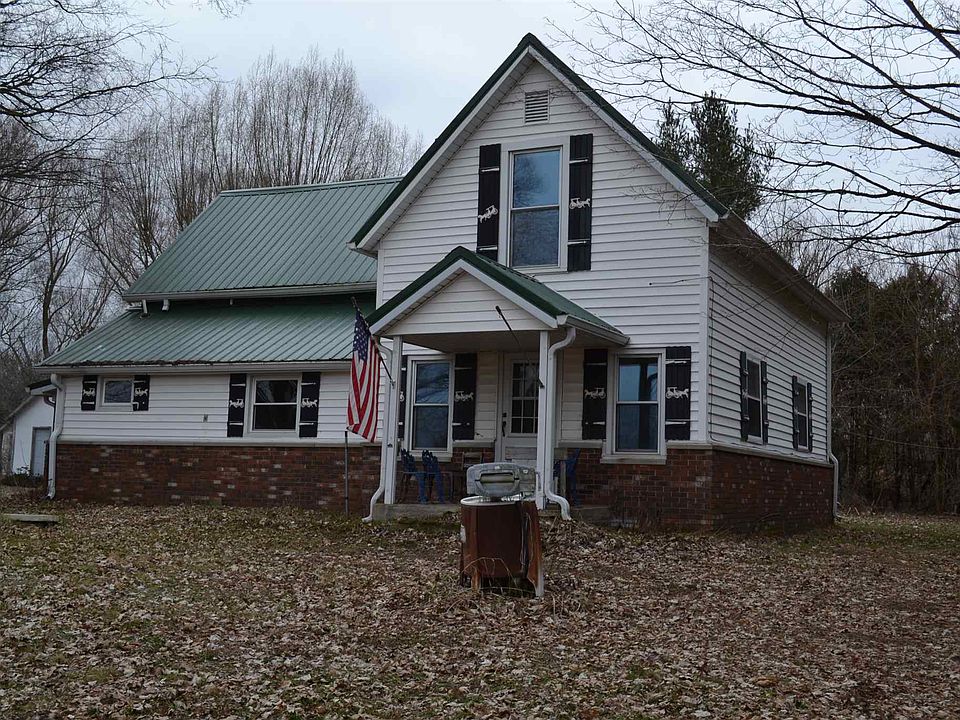 Rural yet close to town. Large 3 bedroom home set on 3 1/2 acres with outbuildings. House also has Living Room, Family Room, eat in Kitchen, partial basement, wood floors, and lots of updates including metal roof, septic and heat pump. Covered patio. Several outbuildings including garage, barn, shop, and sheds - you will have plenty of storage. Tree lined acreage offers plenty of privacy.