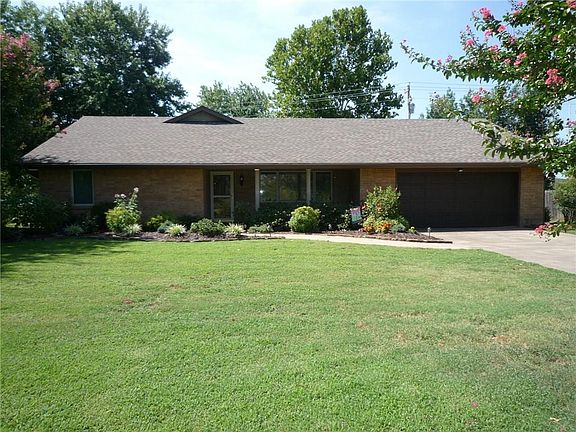 Large home with formal living, family room and small den area is outside the city limits and sits on 1.18 acres. Solid surface counters in kitchen and baths, vinyl windows with life time warranty. Kitchen has moveable island, pantry with pull outs, double ovens and stainless appliances. Covered front porch, covered patio and open deck. Attached 2 car garage and detached 2 car garage with overhead door, 220 elec., shop heater and window A/C. Seller offers a $1000 allowance for wallpaper removal and paint