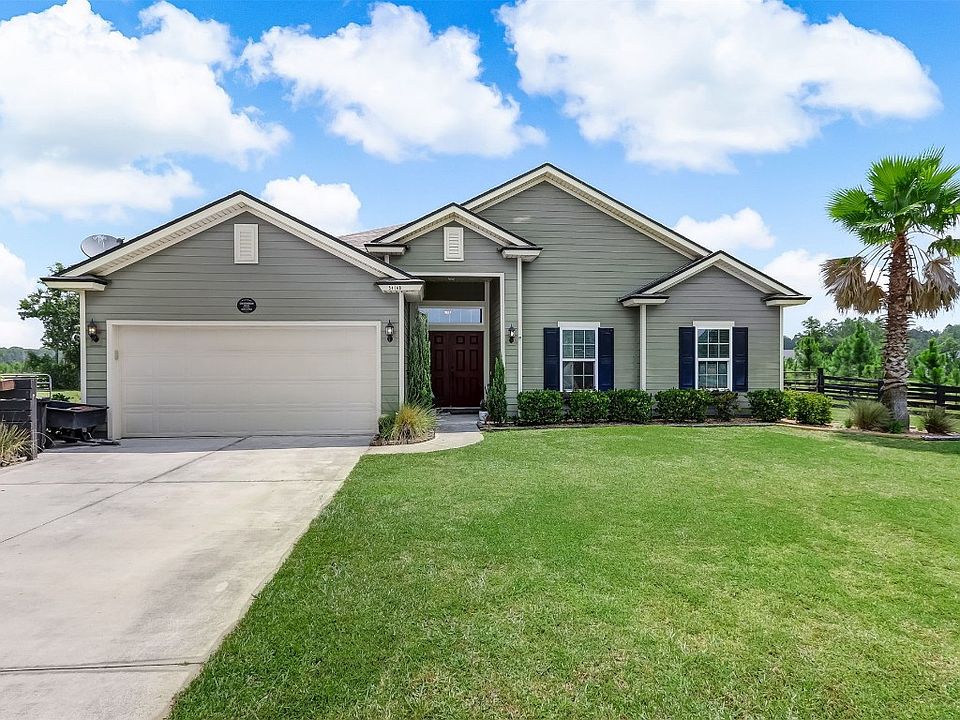 This 5 BR, 4 BA home PLUS BONUS ROOM sits on over an acre lot in Callahan in the Reserve a Deer Run - plenty of room for a growing or extended family. OPEN RURAL, LOW HOA, NO CDD, COUNTY TAXES! Fresh landscaping and double front doors welcome you to the customized Fleming II floor plan featuring five bedrooms and three full baths on first floor, plus generous bonus room with full bath and walk in closet on second. Hand scraped wood flooring throughout main living area complements the Chef's kitchen with working island, granite counters, pantry, new cooktop, double ovens, farm sink, and floating shelves w/ subway backsplash. The lot offers room for a barn, garage, or workshop for all the toys/RV/Boat. Chicken coop & pergola convey. Free flowing 600 ft deep Artesian well, 2 hot water heaters, dual zone AC, water softener + electric fence. Callahan Public Schools and quick access to I-95 / Jacksonville and an easy commute to Yulee & Historic Fernandina Beach. Partial VA assumable loan.