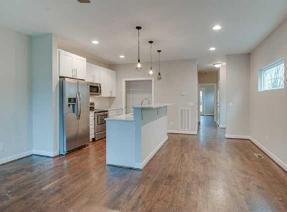 $2550/ Mo with 2 year Lease Enjoy your covered front porch and private back yard in uber hip West Nashville/Nations. Walk to Centennial Cafe, Frothy Monkey, La Juquilita, and 51st Kitchen and Bar (the list goes on...). Stainless steel appliances, hardwood floors, open concept first level with kitchen island. Off street parking, deck, washer/dryer, and fully fenced yard for your dog !!