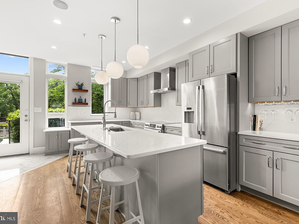 Set on a quiet, tree-lined street in Northwest DC, 5415 9th Street NW, Unit 1 is a beautifully crafted, two-level residence that blends thoughtful design with the comfort of modern living. Built in 2020, this spacious 2-bedroom, 2.5-bathroom home lives like a townhouse, complete with two private outdoor spaces and dedicated garage parking. The sun-drenched main level features soaring ceilings and full-height windows that flood the space with natural light. The open-concept layout is ideal for both daily living and entertaining. At the heart of the home is a designer kitchen, featuring stainless steel appliances, generous quartz counter space, ample cabinetry, a built-in coffee bar, and modern light fixtures. The living and dining areas flow seamlessly out to a private terrace overlooking the shared backyard—perfect for a quiet morning coffee or evening cocktails with friends. Downstairs, two spacious bedrooms each offer en-suite bathrooms for privacy and convenience. The primary suite includes direct access to a second private patio, large closets with custom built-ins, and a spa-like bathroom complete with a dual vanity, oversized walk-in shower with multiple showerheads, a custom bench, heated floors, and a heated towel rack. A full-size Whirlpool washer and dryer round out the lower level. This boutique building is located near some of the city’s most beloved local spots, including La Coop Coffee, Timber Pizza, ANXO Cidery, Everyday Sundae, Donut Run, Brightwood Pizza & Bottle, Lost Generation Brewing, and Honeymoon Chicken. Comfort, convenience, and quiet luxury—schedule your private tour today.