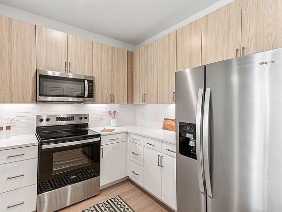 - Exterior features: 9-Foot-High Ceilings *, Barbecue, Brushed Nickel Finishings, Carports *, Community Access Gates, Deep Radius Kitchen Sinks, Designer Inspired Cabinets, EV Charging Stations, Flooring: Wood, Keyless Entry/Smart Lock Technology, On-Site Surface Parking, Package Receiving, Pedestrian-Friendly Sidewalks, Green Space, Personal Garages*, Pet Park, Picnic Area, Quartz Countertops, Stainless Steel Appliances, Under-Cabinet Lighting, Walk-In Showers *, Yoga & Stretch Area