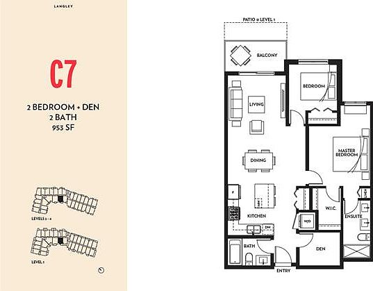 The perfect place to sit and unwind or take a relaxing walk after work! Convenient and Cozy 953 sf Condo ! Seating Areas, firepit and Children's play area provide outdoor entertaining space while indoor amenities include a fully-equipped gym, yoga room, boardroom, library, study and guest suite. Shopping at Willow brook. Close to Save on Food, Safeway and Buy Low! You're Centrally Located and amenity-rich! 2 Min. to major shopping and essentials and 7 Min. walk to main bus route. Stainless appliances, Quartz countertops with full height backsplashes, Laminate hardwood and durable carpet in all bedrooms. 2 underground parking lots included. BC Hydro WIFI TV telephone not included. References and credit check are required. 1 year lease minimum. *Availability: May 1st, 2021 ; *Terms: Min one year ; *Pets: Yes ; *Parking: 2 ; *Amenities: fully-equipped gym, yoga room, boardroom, library, study suite and guest suite; *Entertaining: Seating Areas, firepit and Children's play area