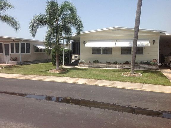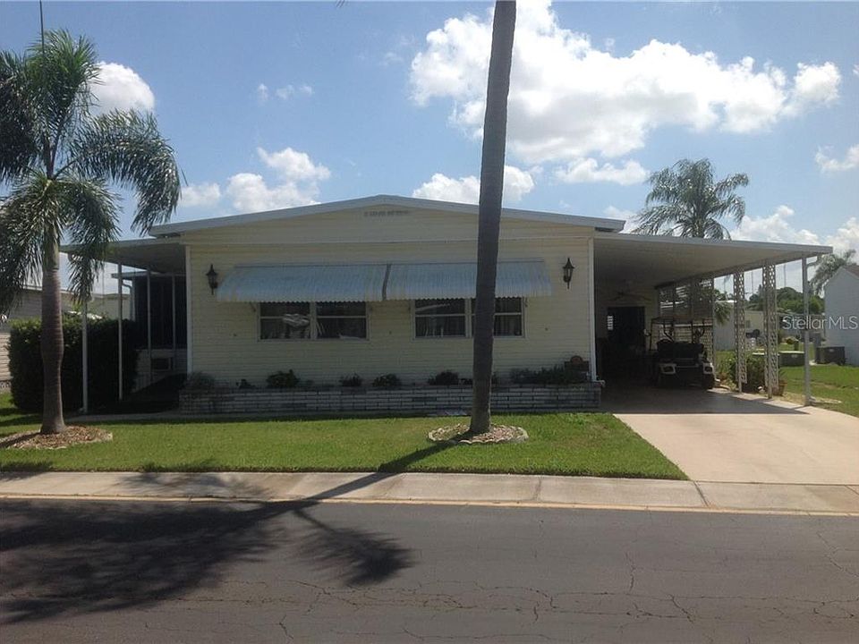 Well maintained two bedroom, two bath home in a 55+ community with many actives. This home comes unfurnished. Home has a 29 x 9 A/C Florida room. Large utility shed with washer and dryer. Many updates including: A/C 1 year new, aluminum roof over, new washing machine,plumbing, vinyl siding, windows, new entry door and new steps, tented in 2015. Ramp into the Florida Room can be removed, steps underneath. Low maintenance fees include: water, sewer, trash, lawn, community pool, club house, manager and shuffleboard only $150/month. Co op certificate for land sells for $42,000 w/o a unit. Back gate so you don't have to come out on 53rd Ave W. NO Pet section.