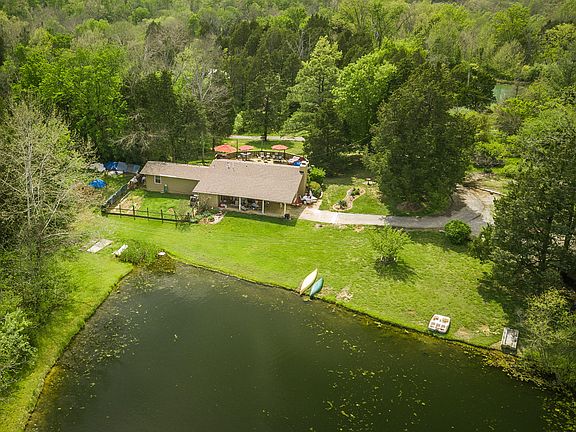 Welcome to your private retreat within minutes of shopping and expressways. This cozy Ranch overlooks a fully STOCKED POND in the rear, enjoy sipping your coffee while watching nature from the comfort of your dining room. Two spacious bedrooms, and 2 full baths, open family room with wood burning FIREPLACE. Current owners converted from a 3 bedroom home to make living room larger. PRIDE IN OWNERSHIP abound, updates include new flooring, paint, back splash, and UPDATED ELECTRIC. Partial unfinished basement, 2 car attached carport, with detached 1 1/2 garage with storage and 1 carport. Gorgeous deck and above ground POOL round out the front of the home. Summer is calling and this oasis is perfect! The Pond stocked with Blue Gill, Bass, Catfish, and Red Ear Shell Cracker. VIRTUAL TOUR