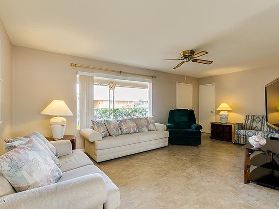 Back on market, buyer financing fell through. This this beautiful Dreamland Villa, 55+ community home was recently updated with new tile floors, bath, and neutral paint. Roof & AC were replaced in 2012. Inside, you'll feel right at home with fresh paint, 12''x 24'' tile flooring including the Arizona Room. The hall bath was also remodeled with easy enter shower, new fixtures, and vanity. The master bedroom is large with two closets and enough room for a sitting area. The kitchen offers plenty of storage and counter space, breakfast bar, and a window with a view of the back yard. You'll love the outside too; Low maintenance yard, delicious citrus tree, workshop, extra storage space, and a Tuff shed complete this lovely home. This home is NOT a flip.