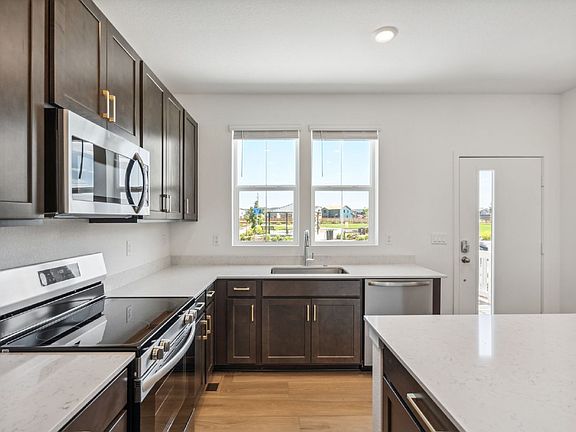 This gorgeous, BRAND NEW 3bd/2.5bath end-unit townhome is just a stone's throw from downtown Timnath and sits just across the street from a pocket park in the Timnath Lakes community. Video Tour available on our website. This floorplan is one of the featured models of the collection, offering a blend of convenience and modern luxury. The kitchen is stylish and functional, all quartz counters, stainless steel appliances, and plenty of storage. The huge kitchen island doubles as a breakfast bar for casual meals and gold handles contrast beautifully against the walnut-colored cabinets. LVP flooring throughout the main level provides a beautiful and durable style to the home. The great room is bright and spacious and makes entertaining a breeze. Upstairs, the primary retreat is a true getaway, with coffered ceilings, en-suite bathroom, and sunlit walk-in closet. The primary bath optimizes convenience for your morning routine, with double counter-height vanities, walk-in glass-enclosed shower, and private commode. The second and third bedrooms are also upstairs and are complemented by a full guest bath, complete with double sinks, tub, and shower. The laundry room - with included washer and dryer - is also upstairs for added convenience. The attached 2 car garage - accessed from the alley behind - provides safety and comfort, especially during wintery days! Just a 3 minute bike ride brings you right to the Timnath Public Market & Coffeehouse and the local Beerwerks! Minutes away from Costco and Walmart and easy access to I-25. HOW TO APPLY: Our website has instructions on how to apply, as well as our application criteria. There is a $60 application fee required per adult aged 18 and older and you can apply on our website. Advertised availability is subject to change without notice and cannot be guaranteed. Rental Terms: 12+ month lease, unfurnished Application Fee: $60 Security Deposit: Equal to First month's rent Available: September 1, 2024 Pet Policy: Well-behaved Dogs Allowed No cats Utilities: Tenant pays utilities Included Appliances: Appliances: Refrigerator Washer & Dryer Microwave & Oven Dishwasher Resident Benefits Package: All Penta Homes residents are enrolled in the Resident Benefits Package (RBP) for $45.95/month which includes liability insurance, credit building to help boost the resident's credit score with timely rent payments, up to $1M Identity Theft Protection, HVAC air filter delivery (for applicable properties), our best-in-class resident rewards program, and much more!