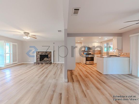 This property is available. Please inquire on this site to schedule a showing. Available now! This charming single-story 4 bedroom, 2 bath on an extended, elevated corner lot offers views from the front yard and a large backyard to enjoy the outdoors. The interior features stylish and clean light, plank flooring throughout and ceiling fans in every room. The stone fireplace in the family room invites a cozy ambiance and the kitchen features new appliances: stainless steel dishwasher, oven, and microwave. The 4 comfortable, bedrooms are situated down the hall. Both bathrooms have been freshly remodeled with new vanities and toilets. The primary suite features dual closets and a walk-in shower. The house is conveniently located within minutes of shopping and dining options with close access to the 15, 60 and 91. Enjoy the scenery with nearby hiking trails, including Rubidoux Mountain, and much more. Pets are considered on a case-by-case basis with an additional deposit. Security deposit is 1x monthly rent. Laundry hook-ups available. Heating: ForcedAir Cooling: Central Appliances: Range Oven, Microwave, Dishwasher Laundry: Hook-ups Parking: Attached Garage, 2 spaces Pets: Case by Case Security deposit: $3,100.00 Included Utilities: None Additional Deposit/Pet: $500.00 Disclaimer: Ziprent is acting as the agent for the owner. Information Deemed Reliable but not Guaranteed. All information should be independently verified by renter.