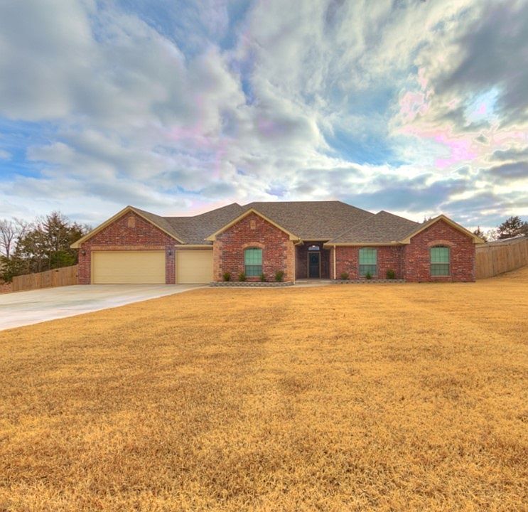 SALE PENDING Edmond Schools! Looking for a tranquil setting w/plenty of room to roam? You won't want to miss this amazing home sitting on a fully fenced .75 acre lot MOL. 2 yrs old & still looks brand new! Loads to offer with 5 beds, 3 baths + large bonus/flex room with closet. The kitchen features a very generous walk-in pantry & granite countertops. Split floor plan with 2 of the 4 secondary bedrooms featuring walk-in closets. Sleep well in the generous master suite that features a HUGE walk in closet & a spa like bathroom with dual vanity space & a luxurious garden tub. The large utility room features a STUNNING custom built mud bench. 3 car garage, aerobic septic system & a private well featuring a UV filtration system & water softener. In ground 8-10 person storm shelter was installed in the spring of '17 comes w/a 10 yr warranty to transfer to buyer. Kapalua Crossing is a quiet cul-de-sac street located 3 miles N of Waterloo at the NE corner of Simpson & Kelly. This home is a fantastic value for Edmond school district. Text or Call 479-301-7774 to schedule a showing.