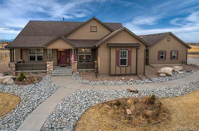 Gorgeous home with panoramic views of the entire Front Range & Pikes Peak. Located at the back of a quiet cul de sac. Great curb appeal & a welcoming front porch. Beautiful hardwood floors. High ceilings throughout. Formal dining room. Study. Updated lighting & fixtures. Surround sound throughout. New roof. Nicely landscaped backyard with a custom gas fire pit. Finished 4 car garage with 2-240 outlets, hot water spigots, piped for gas furnace, separate electrical panel - a grease monkey's dream!