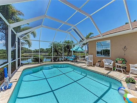 WHERE DREAMS COME TRUE! Ready to escape HIGH Taxes, Congested Highways and Stifling Lockdown measures? Wouldn't you rather relax floating in a luxury Pool, watching sunsets on a lake and live the "good life" in Your Own Piece of Paradise!!! Have it ALL in this Amazing updated home on Florida's Gulf Coast! Features include: A Classic Stamped Driveway sure to impress...a screened foyer entry, the perfect place to welcome fellow weary travelers from "up north"...You'll enjoy a great room where friends and family gather for fun and fellowship...A kitchen that your family chef will love offering New Star Golden Granite counter tops, top of the line stainless steel appliances (including a double oven), 42" Oak cabinets with pull out shelving, a breakfast bar and pantry. The Bonus room is perfect for a pool table, Home Theatre or "toy room" and features a bar where good times will surely roll...The Master bedroom offers majestic hand scraped Maple Almond flooring, a setting area great for a quiet moment with a good book, a huge California closet and luxurious bath with a King size shower, twin sinks and a generous tub where you'll delight to soak with a candle burning as you recall the events of your day and escape into your own "quiet place." Two additional bedrooms that share a bath are separated for the privacy that guests or kids will appreciate. This is space which could also be used as a two room suite for returning adult children or as In Law quarters. There is also a Office/Den with French doors great for a home based internet business or a hobby room...And did I mention the recently resurfaced, solar heated caged POOL with an expanded deck for "sunning" that offers a serene lake view...Crown Molding in most living areas adds a touch of class, recent interior painting in neutral colors make decorating a breeze, UV Coating on the windows keep energy costs at a minimum, Hurricane Shutters protect from storms making you feel safe no matter what Mother Nature decides and the Full Perimeter Security System gives you the freedom to travel and know your home is safe while your gone. The 4' garage extension makes room for Dad's workshop and space to park both cars inside...the list just goes on! Lexington offers a neighborhood pool, courts and a children's play area your grandkids will love. IF you're Ready to MAKE THE MOVE This home is waiting for you so CALL TODAY and start your journey Home to Paradise.
