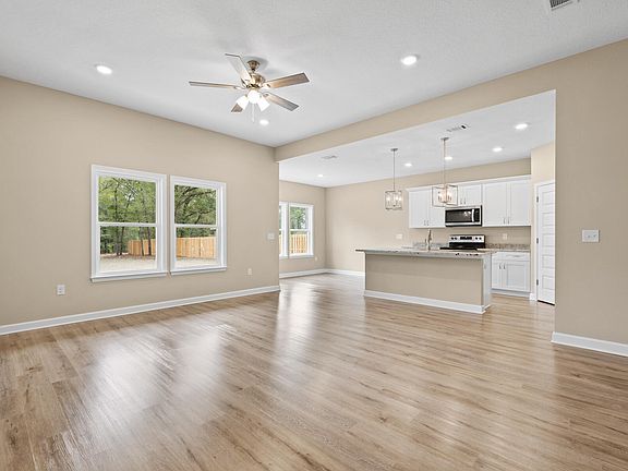 FULL ACRE - LATE DECEMBER COMPLETION - seller will contribute up to $10,000 towards closing costs and/or prepaids and/or rate buy down (restrictions apply). Covered front & rear porches for relaxing, inviting foyer opens to family room which overlooks the kitchen/dining area. Plenty of dining options from the bar seating at the work island to the dining space which opens to covered rear porch. Kitchen has stainless steel appliances, white shaker cabinets, corner pantry and quartz or granite countertops. Luxury Vinyl Plank in all common areas, carpet in bedrooms, recessed lighting and ceiling fans throughout. Split bedroom design with the owner's bath having walk-in closet, double vanities and shower. Call to see today!