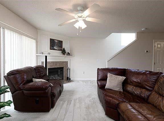 Original Owner/ Carlton Floor Plan. This bright and airy END UNIT has upgrades...Fireplace/2 Story Windows! Maintenance Free Living. Spacious entry with 1/2 bath then walk into completely equipped kitchen (Refrigerator, Range, Microwave, Dishwasher...all in new condition) with lots of counter space, cabinets, pantry and breakfast bar. Very spacious living room with cozy fireplace and access to the patio. Staircase has two story windows to loft/landing area where there is a full bath and laundry, plus Master Bedroom and bath with two closets and vaulted ceiling. Then spacious 2nd Bedroom. Loft is a great area for an office or library, etc. Carpeting throughout except entry, baths and kitchen. Location convenient to major highways, restaurants, shopping, downtown and airport. No mowing, shoveling or exterior maintenance.