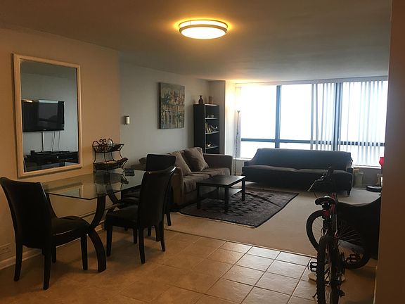 High floor, spacious one bedroom at the Park Tower. Spectacular lake views! Full amenity building with sauna, gym, racquetball, indoor pool, deck, mini market, cleaners and coin laundry. Rent includes heat, air, basic cable. Step out the back door to the park, lakefront and Foster Beach. Mariano's & Jewel within 2 blocks. Three express bus lines to downtown outside the door of the building and Red Line El 3 blocks away. Unit & building features: * Open concept kitchen into dining & family room * Spectacular view of Lake Michigan, the Parks & Foster Beach * 24 Hour Front Door Staff to greet you & your guests * Fitness & Health Center includes indoor & outdoor pool, racquetball court, Jacuzzi & more * Sky deck * Laundry & Dry-Cleaners Onsite * Storage * Bicycle room * Conveniently near the Red Line, Bus Lines, Dominick's, Jewel Osco Grocery and many popular restaurants * Prime Heated Parking Space available for an additional $135 per month $1799 per month includes AC, heat, cable, water, and INTERNET ! Negotiable rate if furnished upon request. Serious inquiries please call unit is a must-see! $1740 per month, minimum 1 year lease with preference for longer terms