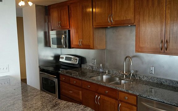2bdrm + den, which can be 3rd bdrm. 3 full bath. Granite counter tops w SSappl. Lg jacuzzi tub. Hardwood flrs t/o. Amazing views, bike room, recvg rm, grocer*mgmt on site. Gym w pool and parking available. Extra storage included and great closet space w/in unit. A must see! Won't last! In unit washer and dryer!