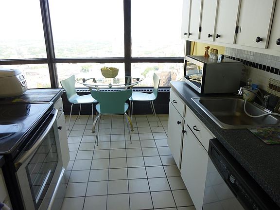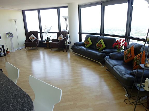 Spectacular lake and downtown view from this rarely available corner two bedroom two bathroom unit. Open kitchen, pergo floors, marble master bathroom. Great split floor plan. Full amenity building with a health club, indoor pool, racquetball courts, supermarket and cleaners. Rent includes the heat, a/c, cable and high speed internet. Valet/ garage parking available for a fee of $120. Heat, a/c, cable and high speed internet is included in the lease fee. Valet/garage parking for a fee of $120.00/month.