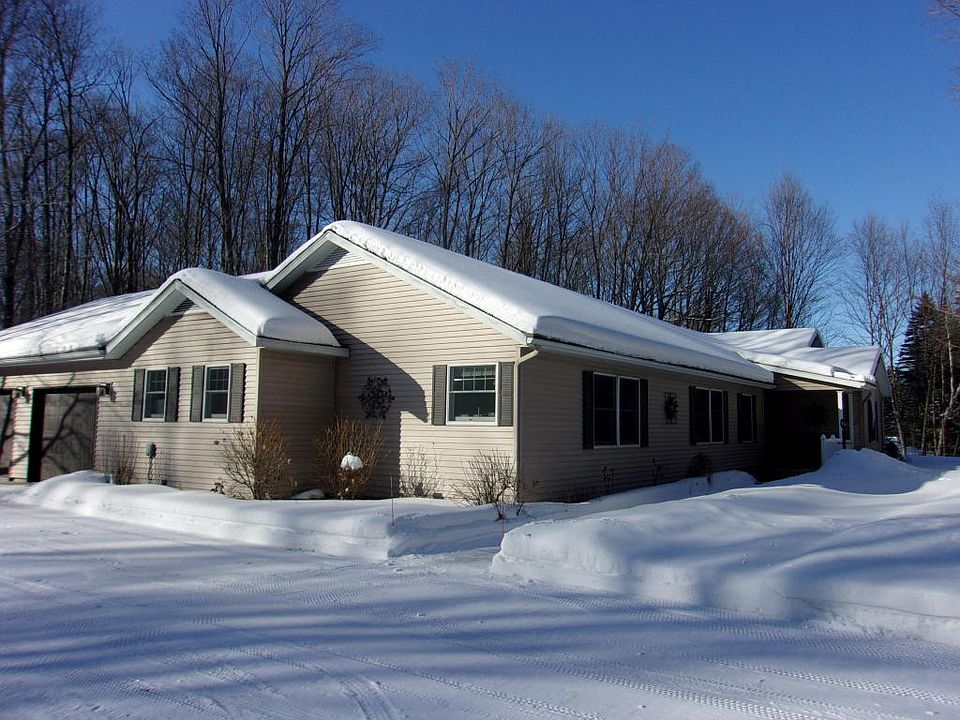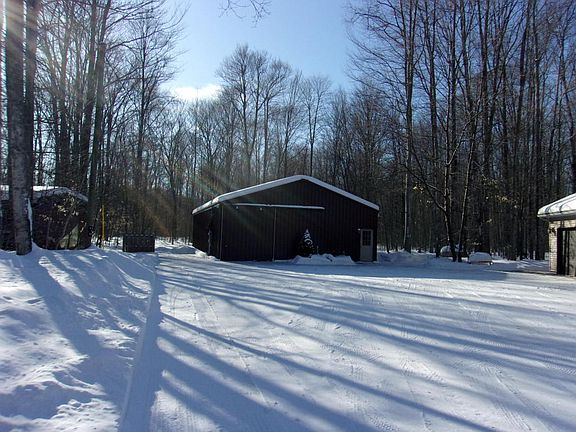 The ultimate dream home tucked in the woods on 10 acres adjoining State Land. 4 bedrooms, 3 baths, huge 56x32 pole barn with 32x16 workshop inside. Built in 2002 with 6'' walls and reinforced roof for snow load. Move in ready, huge 20x 14' craft room or make it a family room. Separate library with built in bookshelves, built in cabinets in dining room also. Huge master walk in closets and separate linen closet. Handi-cap accessible throughout. Many extras in this fine home.