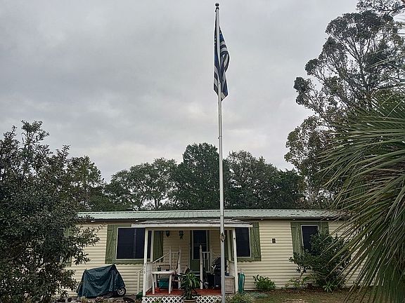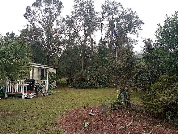 Bring your imagination and make this your very own, with a few refreshing touches and cosmetics. There is no heat or air, heat pump died. But I have a beautiful living room with a wood burning fireplace and cathedral ceiling. Very large master bedroom with private bathroom. Another bathroom down the hall, all fully functional, with two more bedrooms. The property this house sits on is wonderful and tropical, with 4 palm trees and vast landscaping options. Also has a large backyard that is fully chain linked with a workshop. This home has so many possibilities, so if your seriously interested,please make me an offer. Home being sold "as is".