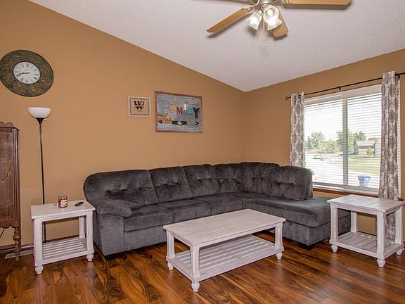 Donât miss this 4 bedroom, 3 bath home in Derby school district! The main level living area, kitchen and dining features beautiful wood laminate flooring, and vaulted ceilings. Enjoy the spacious kitchen with an eating bar and plenty of cabinet space. The master bedroom features a walk-in closet and an en-suite bathroom. Finishing out the main level is one additional bedroom, full bathroom and laundry. The fully finished basement features a spacious living area with, two additional bedrooms and a half bath.